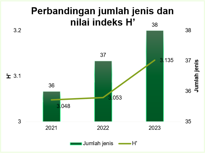 Grafik Perbandingan Jumlah Jenis dan Nilai H’ Indeks