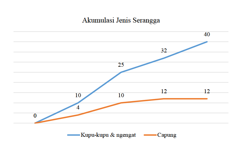 Nilai indeks keanekaragaman Lepidoptera (kupu-kupu dan ngengat) didapatkan nilai H’ sebesar 3,33. Nilai tersebut menandakan bahwa keanekaragaman Lepidoptera di area tersebut tergolong tinggi. Tingginya nilai indeks keanekaragaman dapat diartikan bahwa suatu kondisi lingkungan masih baik dan dapat mendukung bagi kehidupan Lepidoptera. Kondisi habitat kupu-kupu di area IPJLPB PT PLN IP Unit PLTP Gunung Salak masih memiliki ketersediaan tumbuhan berbunga yang cukup melimpah sebagai pakan dan inang kupu-kupu dewasa, keberadaan sungai berpasir dan lantai hutan yang basah memungkinkan kupu-kupu melakukan aktivitas berlumpur (mud-puddling).